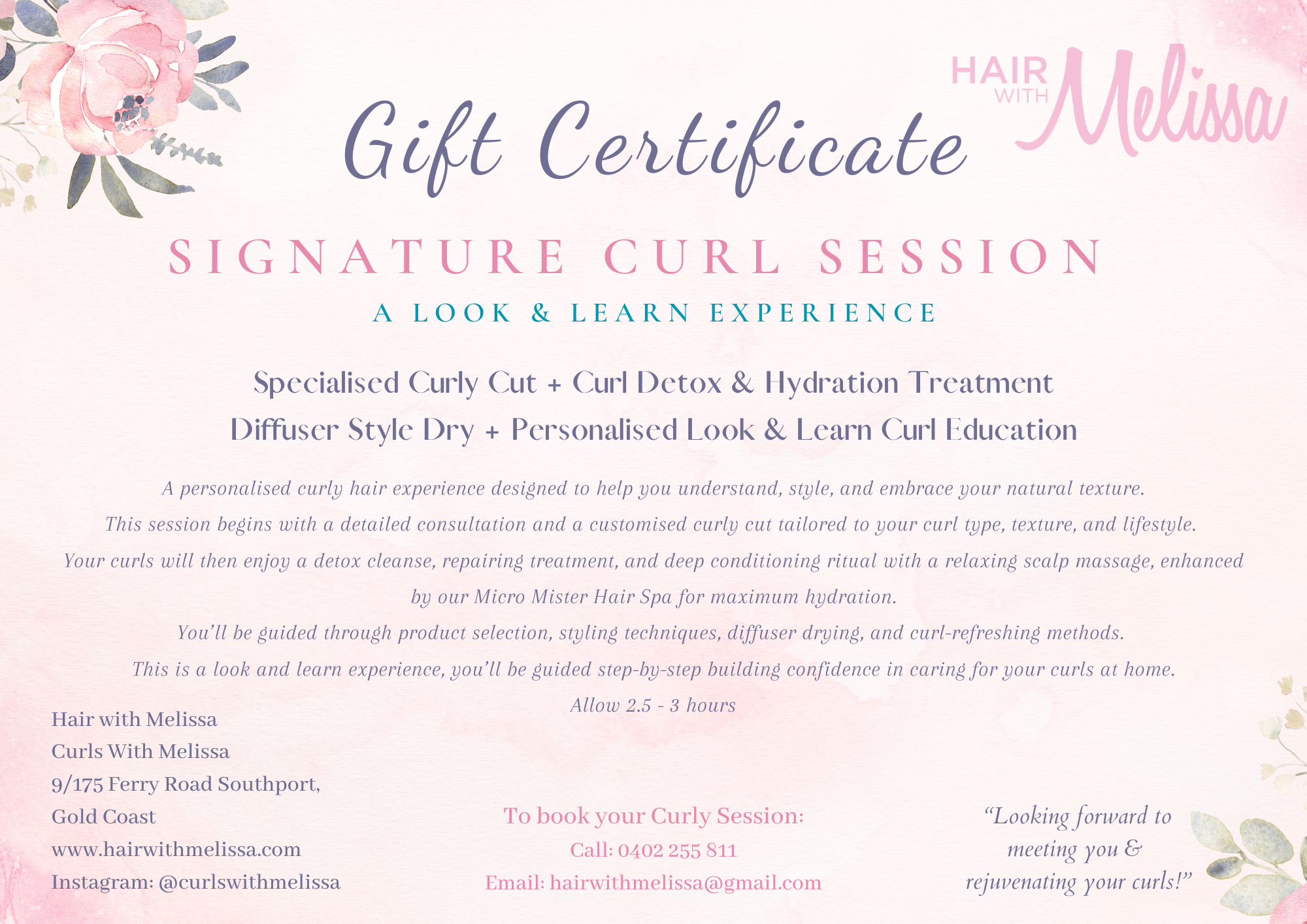 You can print this voucher or pop in salon to redeem the gift voucher.
