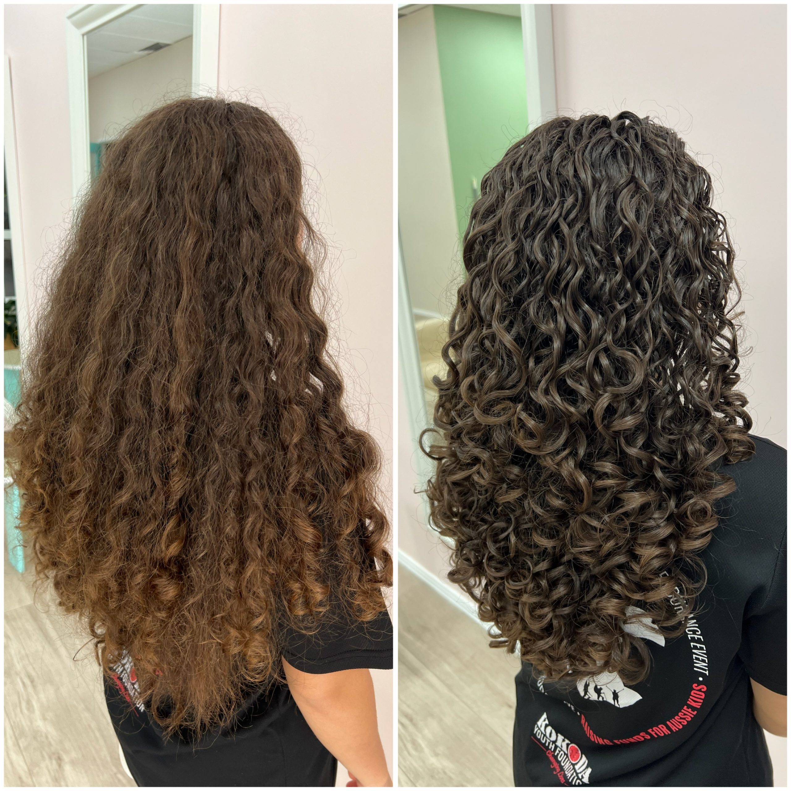 Next, your curls will be treated to a deeply nourishing cleanse and detox, followed by a repairing treatment and a luxurious deep conditioning service with a relaxing scalp massage. This hydration ritual is enhanced with our Micro Mister Hair Spa, allowing moisture and treatments to deeply penetrate the hair for maximum hydration, bounce, and curl health.